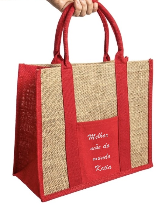 Também temos as Sacolas de Juta com linho personalizadas, como esta abaixo!